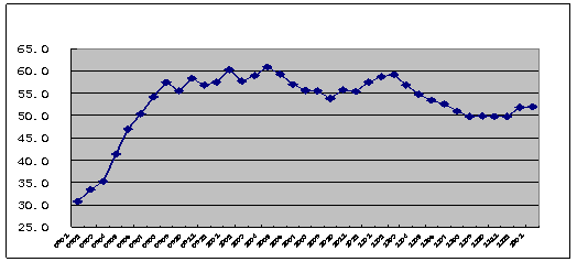 1月份,日本制造业经季节调整后的PMI升至50.7%,高出上月0.5个百分点,为去年8月份触及51.9%以来的最高水平。从分项指数来看,新出口订单指数由上月的49.1%升至50.2%,为去年2月份以来第一次呈现扩张;产出指数升至51.4%,高出上月1.8个百分点,为三个月以来首度出现扩张。